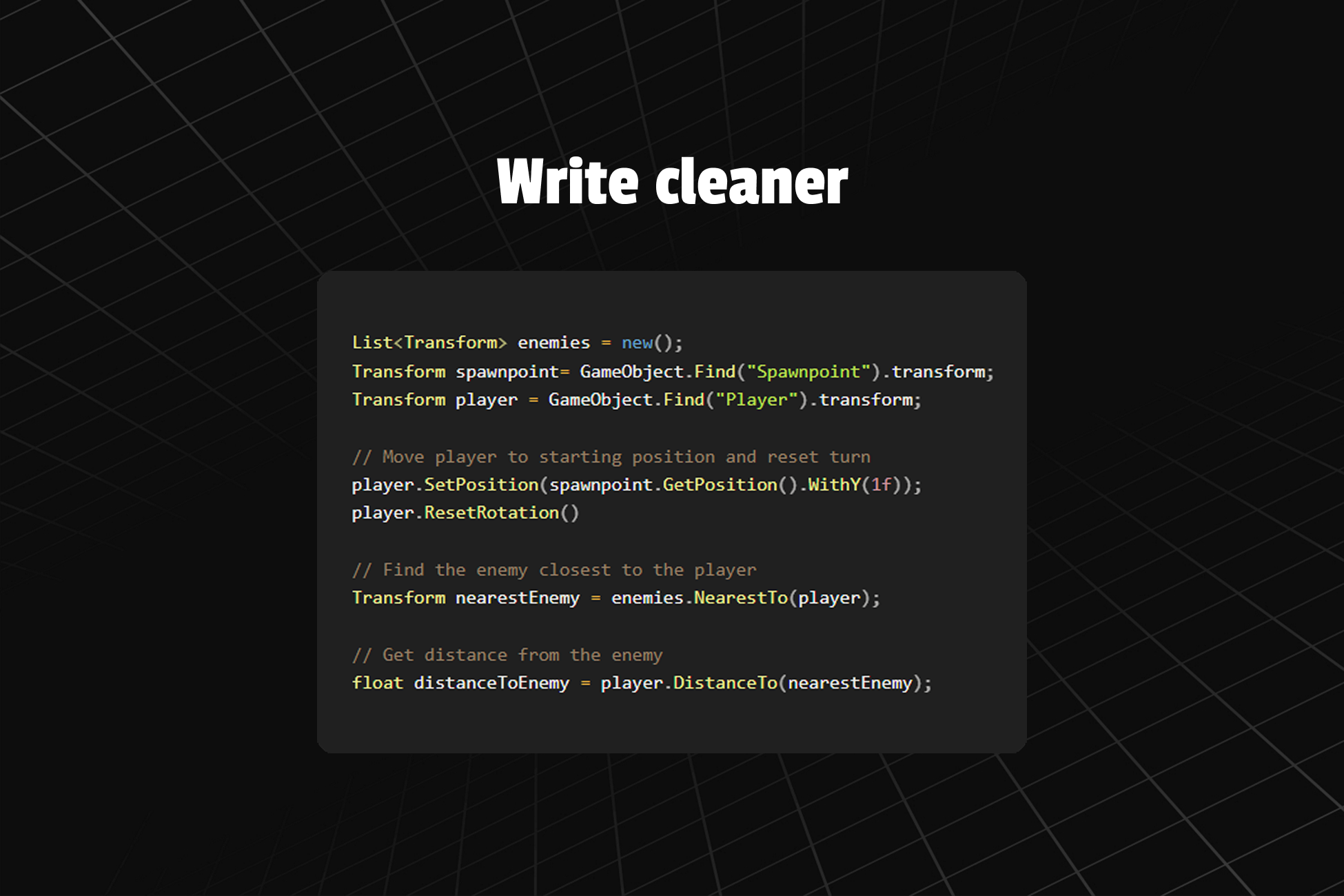 - Covers C# numerics, Transforms, Vectors, Collections, GameObjects, Audio, Components and more