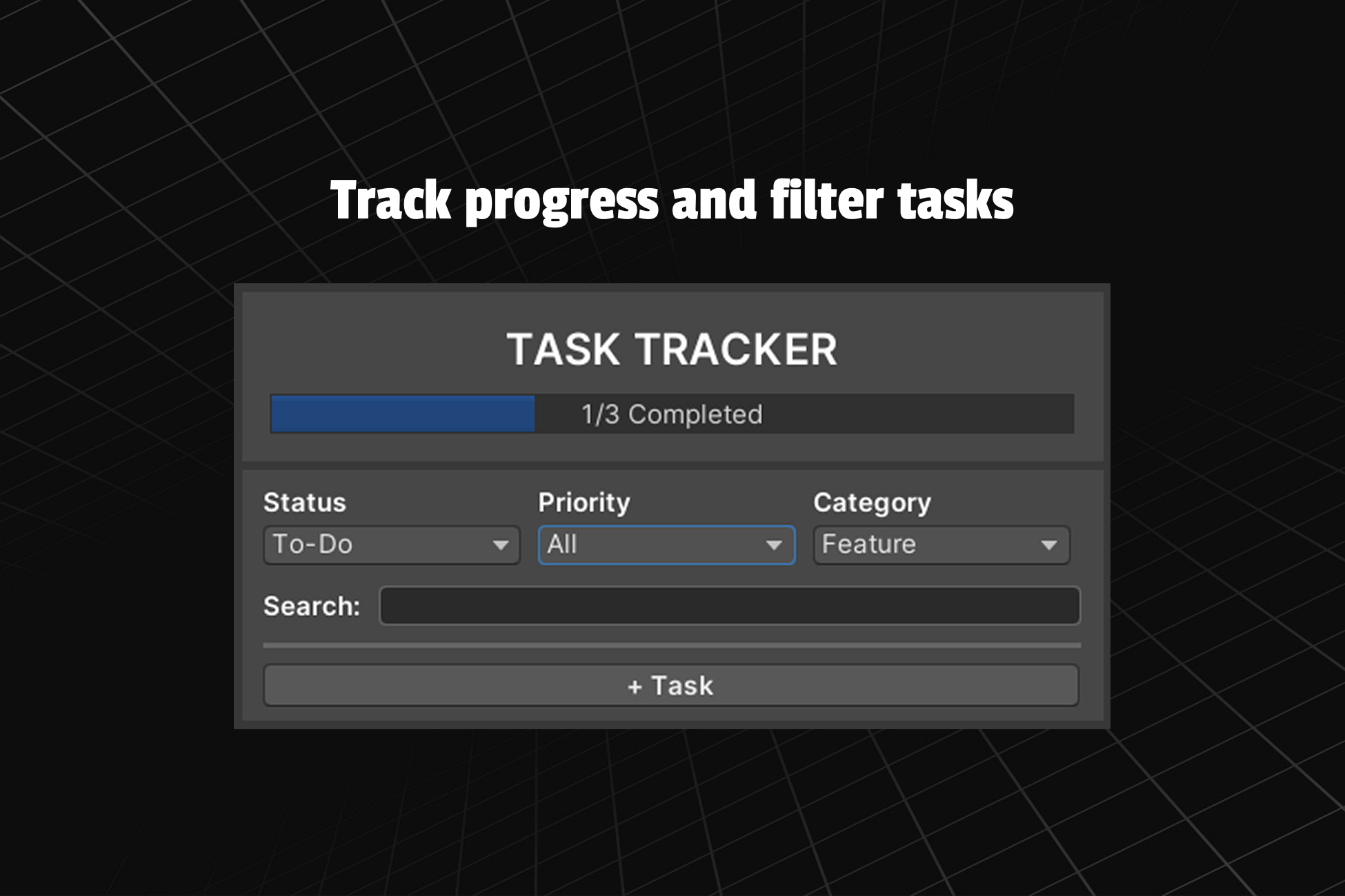 The Task Tracker is a lightweight and efficient tool designed to help Unity developers stay organized directly inside the Editor. It provides a clean, native interface for managing development tasks such as features, bugs, improvements, and more — all stored locally in a ScriptableObject database.